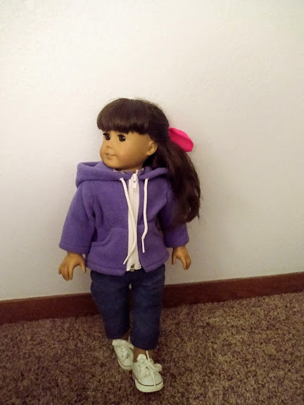 Next is Sam; She's wearing a purple hoodie and jeans that my grandma made for me ❤ And I don't know where the shoes are from.